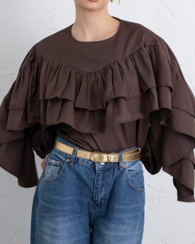 • Volanlı Kolu Lastikli Bluz K Kahve