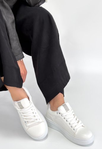 • Yier Beyaz Cilt Bağcıklı Spor Ayakkabı